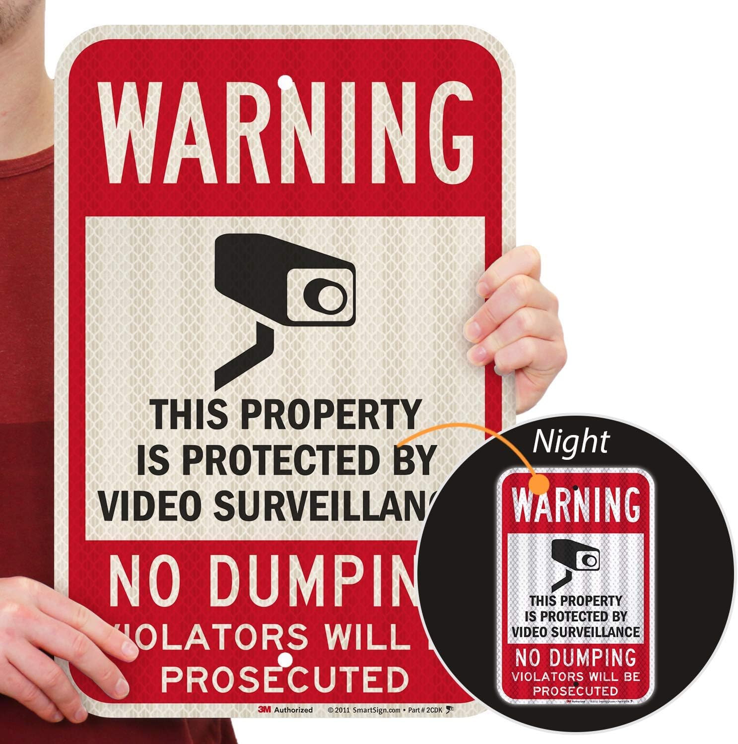 - GIVE A HEADS UP. Convey your Property Protected By Video Surveillance warning with this No Dumping Video Surveillance sign – before you have to intercede personally.